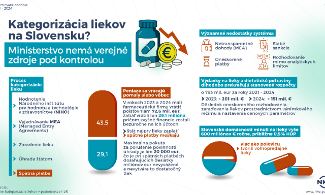 NKÚ: Ministerstvo nemalo pri kategorizácii liekov ochranu verejného záujmu pod kontrolou