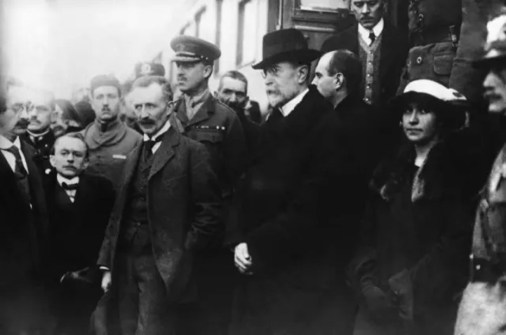 Návrat prezidenta Masaryka do vlasti, foto po příjezdu do Prahy na Wilsonově nádraží 21. prosince 1918