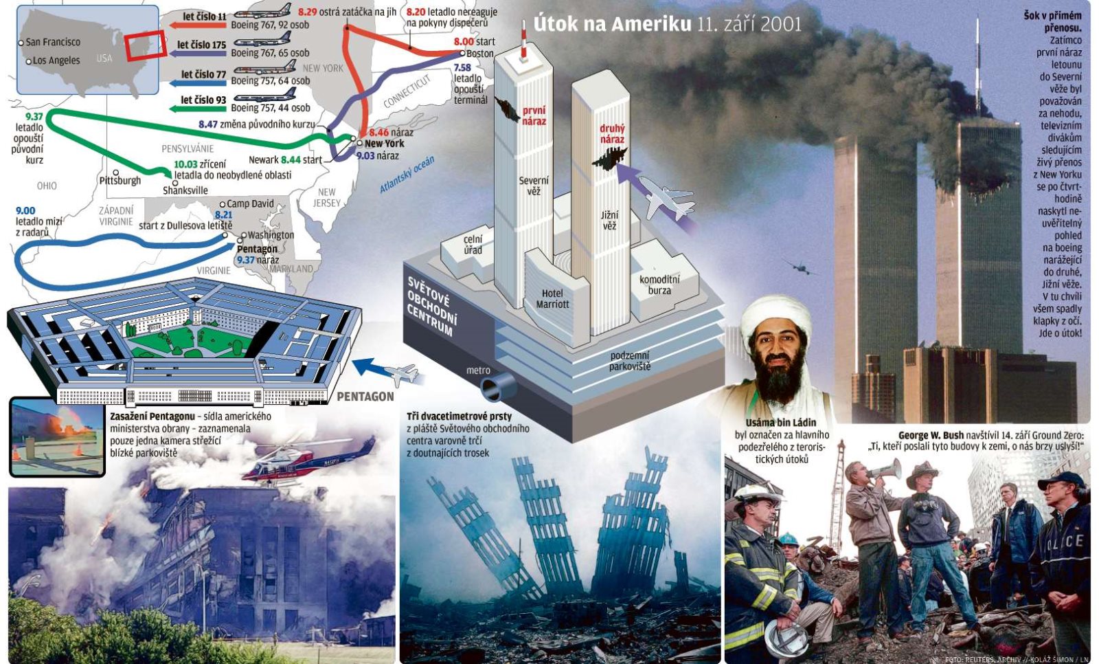 ■ 184 lidí zahynulo, když letoun American Airlines narazil do Pentagonu.