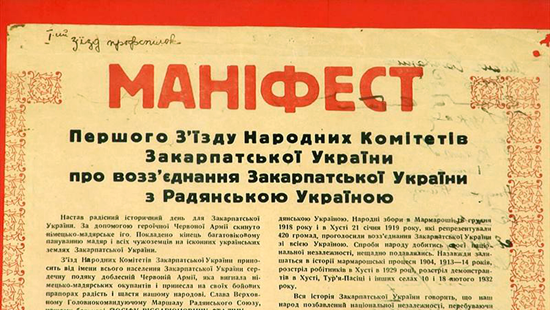 V Mukačeve sa uskutočnil I. zjazd národných výborov Zakarpatskej Ukrajiny. Toto zhromaždenie bolo priamym výsledkom intenzívnej a koordinovanej činnosti politických orgánov 4. ukrajinského frontu pod vedením generála L. Mechlisa, jeho zástupcov (plk. L. Brežnev, plk. I. Ťulpanov) a zástupcov NKVD. Z Kyjeva na zjazd pricestovala špeciálna skupina vedená členom ÚV KS(b)U A. Čekaňukom.