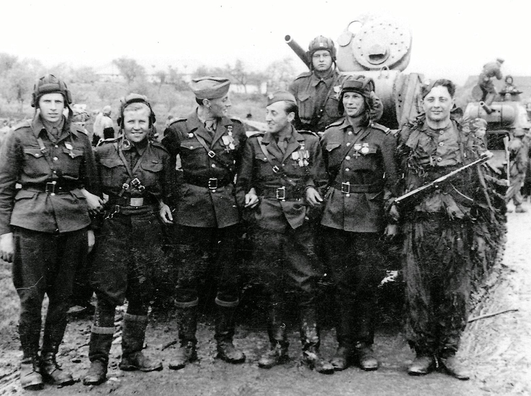 Tankisti 1. čs. sam. brigády v ZSSR vyznamenaní po bojoch o Kyjev Tesařík, Sochor a i.