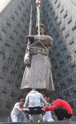 JÚN 2015: Pamätník na Dukle už má bronzovú sochu československého vojaka