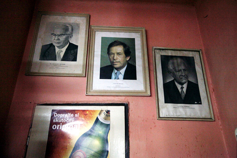 Prezidentská výzdoba v krčme v Osadnom.