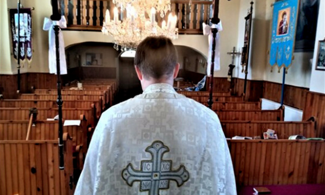 Kňaz po liturgii v prázdnej cerkvi: Nie je čas na falošné hrdinstvá
