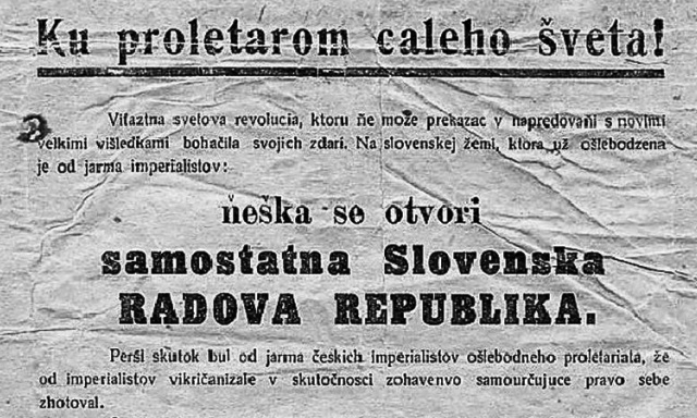 "Na slovenskej žemi, ktorá už ošlebodzena je od jarma imperialistov, ňeška sa otvorí samostatná Slovenská Radová Republika.“ Takto vo východoslovenskom nárečí oznamovali boľševici pred 100 rokmi vznik prvého štátu diktatúry proletariátu na území…