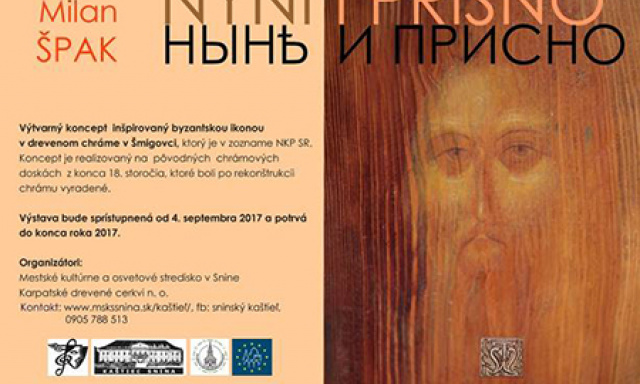 Výstava PRISNO I NYNI - TERAZ I VŽDYCKY v drevenom Gréckokatolíckom chráme Nanebovstúpenia Pána v Šmigovci, ktorý sa nachádza v zozname Národných kultúrnych pamiatok Slovenska, je inštaláciou výtvarného konceptu Milana Špaka. Koncept je inšpiro…