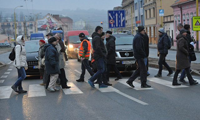 PREŠOV. Zhruba stovka Prešovčanov nespokojných s neriešením dopravnej situácie v meste v stredu popoludní na zhruba 15 minút zablokovala chodením cez priechod p…
