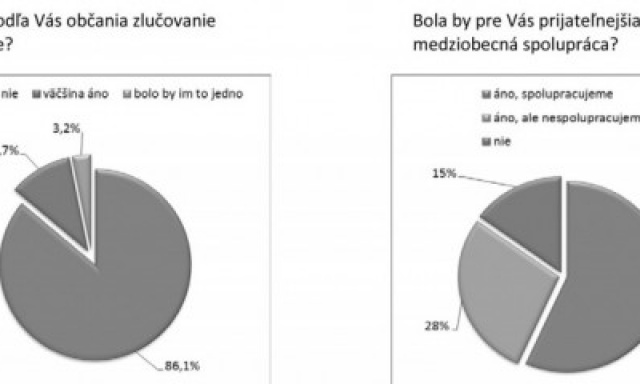 Mária Matiašová sa vo svojej diplomovej práci venovala téme zlučovania obcí. Z dotazníkov, ktoré vyplnila tretina obcí je zrejme, že podľa 86,1% reprezentantov obcí, by občania zlučovanie neprijali dobrovoľne. Až 85% reprezentantov obcí pr…