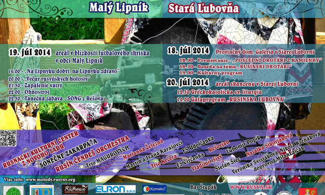 Najbližší víkend 18. – 20. júla 2014 bude patriť rusínskej kultúre. Rusínska obroda na Slovensku, organizácia molody.Rusyny, Spolok sv. Jána Krstiteľa, Ľubovnianske múzeum a Ľubovnianske osvetové stredisko pripravujú podujatia Slávnosti R…