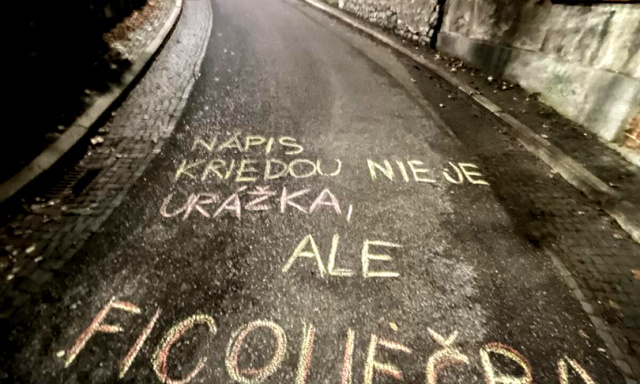 Křídová revoluce. Slovenskem se na podporu studenta šíří nápisy proti Ficovi
