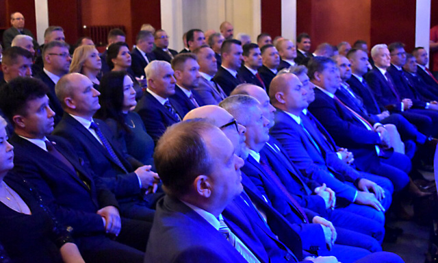 PREŠOV. Staronový prešovský župan Milan Majerský (KDH) aj 62 zo 65 nedávno zvolených poslancov krajského zastupiteľstva slávnostne zložili sľub na ustanovu…