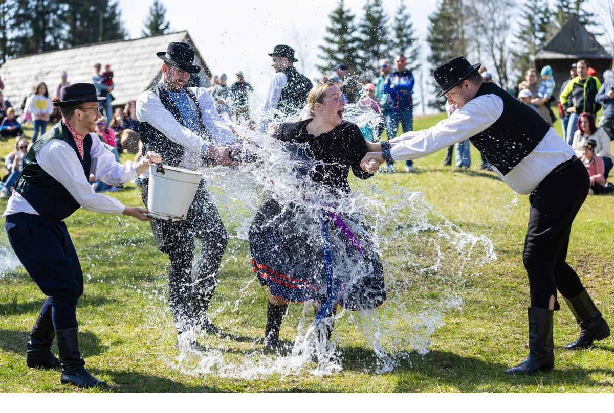 Tradičnú oblievačku si aktívne užívajú členovia foklórnych skupín.