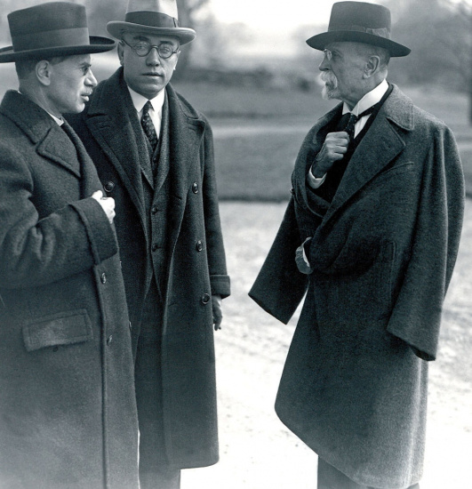 Prezident Masaryk (vpravo) v rozhovore s poslancami.