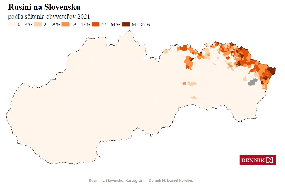 Rusíni na Slovensku. Kartogram – Denník N/Daniel Kerekes, autor