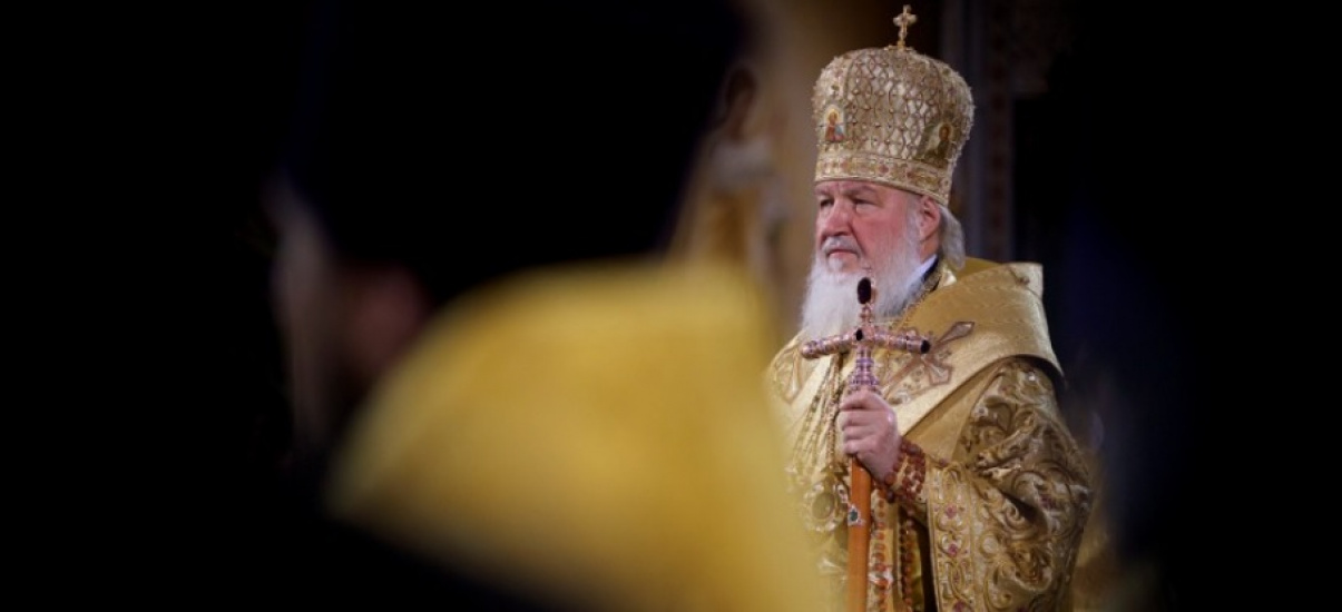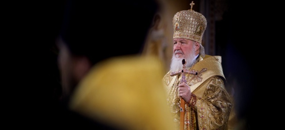 Patriarcha Kirill v Chráme Krista Spasiteľa v Moskve.