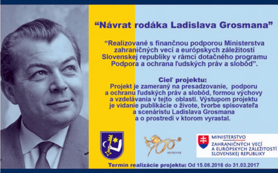 HUMENNÉ. Prozaik a scenárista Ladislav Grosman sa hrdo hlásil k svojim koreňom, miloval Humenné a vždy sa rád doňho vracal. „Aj keď bol kdekoľvek, bol vlastne v Humennom. Často som ho pristihla, že plakal, keď písal. Bolo mu ťažko za tým, čo bolo. Viete, nie fyzicky, ale inak. Nútene odišiel z Humenného, ale v duši ho nikdy neopustil,“ píše v závere vzácnej knihy plnej spomienok jeho manželka, Edita Grosmanová.