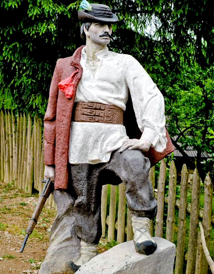 Socha Nikolu Šuhaja umiestnená pri vstupe do skanzenu Stare selo v Koločave.