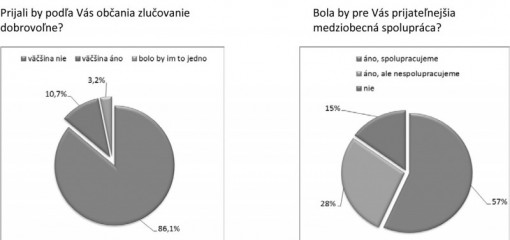 Mária Matiašová sa vo svojej diplomovej práci venovala téme zlučovania obcí. Z dotazníkov, ktoré vyplnila tretina obcí je zrejme, že podľa 86,1% reprezentantov obcí, by občania zlučovanie neprijali dobrovoľne. Až 85% reprezentantov obcí preferuje pred zlučovaním rôzne formy medziobecnej spolupráce.