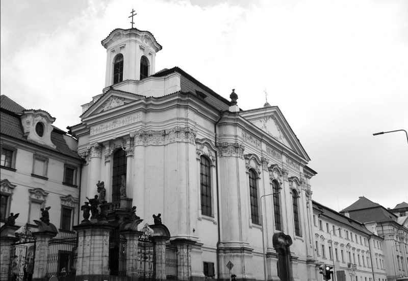Dílo architektů Kiliána Ignáce Dientzenhofera a Pavla Ignáce Bayera z let 1730–1736 bylo zpočátku spojeno se sousedním ústavním domovem pro kněze na penzi a jde o klasickou barokní jednolodní sálovou stavbu s postranními emporami. Již v roce 1783 byl však kostel v rámci josefinských reforem zrušen a začal sloužit jako kasárna a skladiště. V roce 1866 se budova stala součástí Českého polytechnického ústavu království Českého (dnes ČVUT).