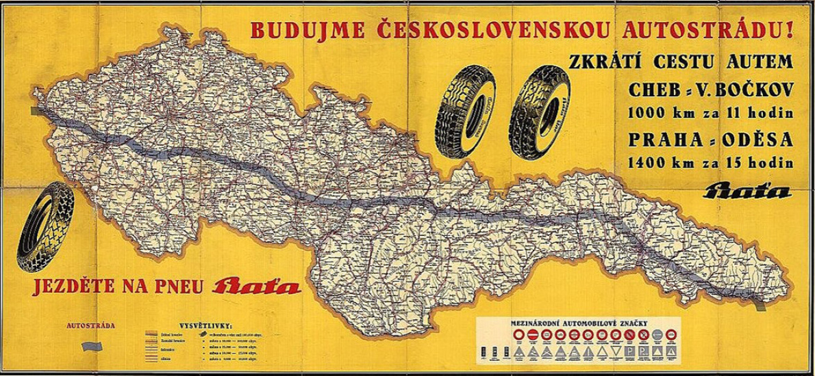 Vize autostrády propojující celé Československo od západní po východní hranici tak, jak ji v roce 1937 navrhl a propagoval podnikatel Jan Antonín Baťa.
