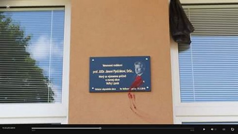 Tabuľu J. Pješčaka sa aktivisti snažili pomaľovať vodovou farbou. Pri páde sa farba rozliala aj na novú fasádu budovy obecného úradu. Starosta na nich podal oznámenie za poškodenie tabule i fasády.