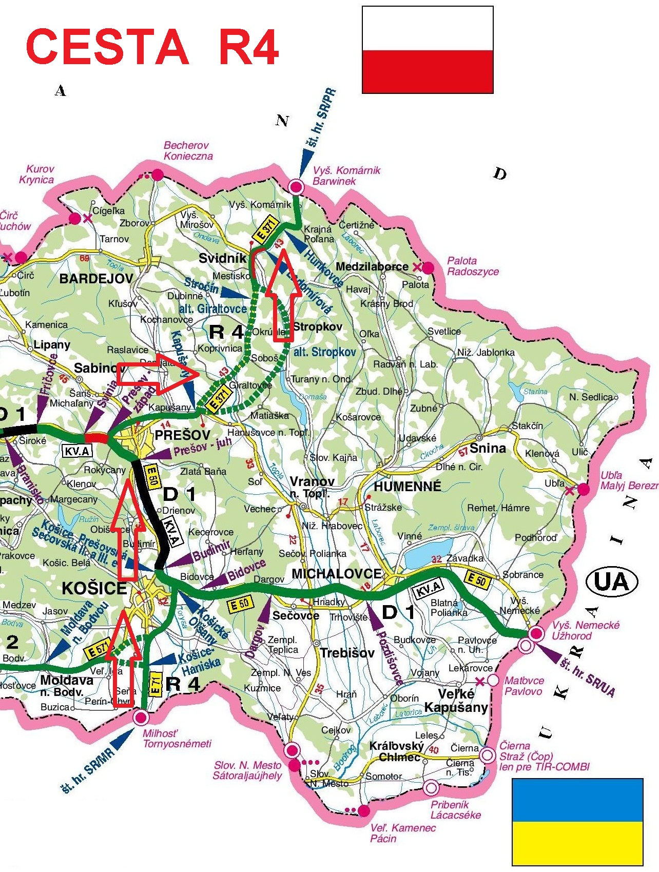 Plánovaná severná časť R4 s už fungujúcim úsekom D1 medzi Prešovom a Košicami a južnou časťou R4 k hranici s Maďarskom by mali byť súčasťou zvažovaného rýchlostného cestného koridoru Via Carpatia.