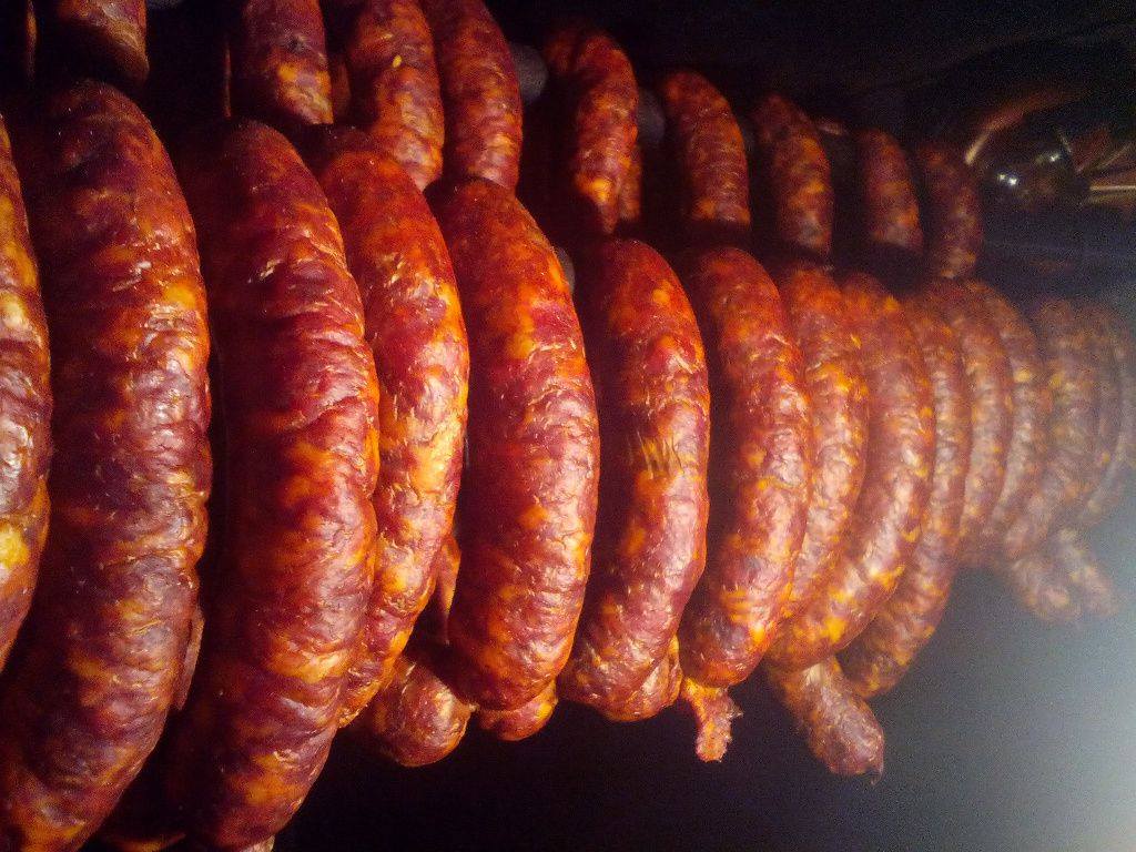 „To sú naše domáce kurimčanské. Toto je naša kurimčanská domáca slanina, toto naše domáce kurimčanské klobásy. Robím ich viac ako štyridsať rokov. Mám veľkú rodinu, tak preto vidíte, že trochu viac toho je,“ ukazoval nám Ján Božík pripravené mäsové výrobky. Priznal, že kedysi doma chovali aj dve ošípané. A neboli sami. Takto to vyzeralo v každom dvore. Dnes už aj on mäso kupuje, ale všetko poctivo robí sám.