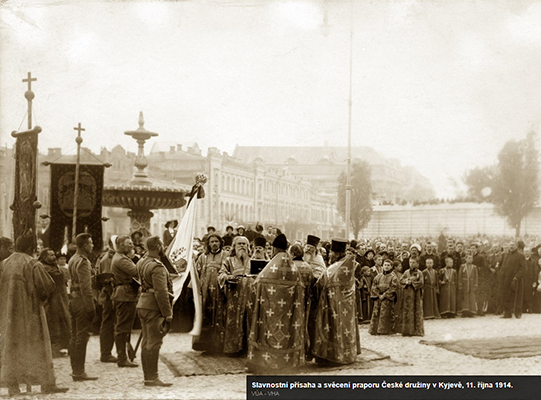 Již krátce po vypuknutí první světové války vznikla v Rusku dobrovolnická jednotka Česká družina. Došlo k tomu 28. srpna 1914 v Kyjevě, a tak se tato družina stala první vojenskou jednotkou prvního československého odboje, když „předběhla“ rotu Nazdar ustanovenou 31. srpna 1914 ve Francii.