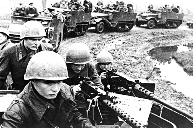 Sovietski motostrelci na Hrone.
