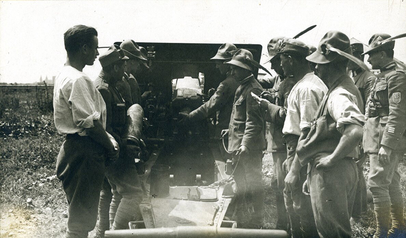 Československí legionári ostreľujú maďarské pozície pri Komárne v roku 1919.