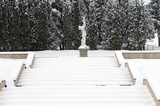 Kalinov v okrese Medzilaborce je prvá oslobodená obec na území bývalého Československa. Sovietska armáda ju oslobodila presne 21. septembra 1944. Túto skutočnosť v obci pripomína viacero artefaktov. Jedným z nich je mramorový Pamätník osloboditeľom nachádzajúci sa v strede dediny. (Zdroj: TASR)
