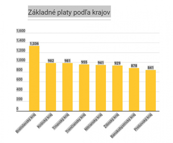 Porovnanie zamestnancov v Bratislavskom a Prešovskom kraji ukazuje obrovskú priepasť medzi platmi. Kým základný plat do 650 eur v hrubom majú v bratislavskom regióne iba zhruba tri percentá ľudí, v Prešove a okolí je to takmer 25 percent..