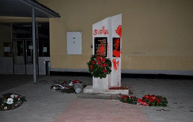 Bustu bývalého komunistického funkcionára obliali aktivisti na protest červenou farbou a na pamätník napísali nápis "sviňa".
