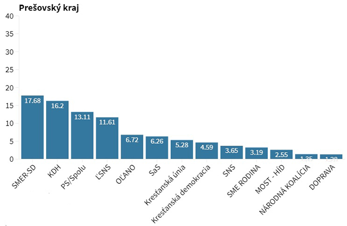 V Prešovskom kraji zvíťazila vo voľbách do Európskeho parlamentu strana Smer-SD so ziskom 17,68 percenta hlasov.