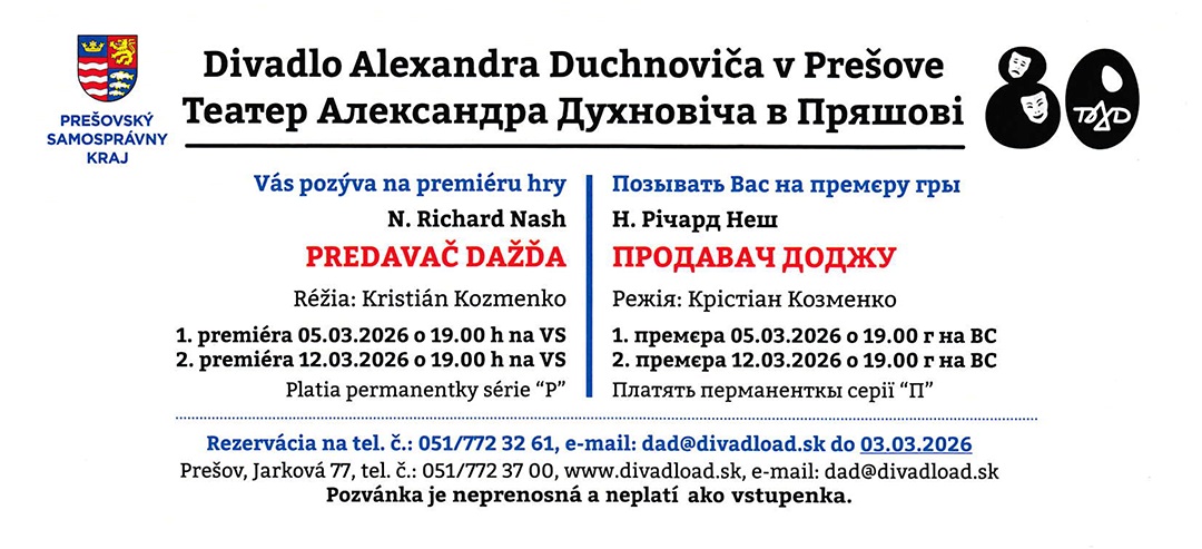 Pozvánka na premiéru: Predavač dažďa / Продавач доджу