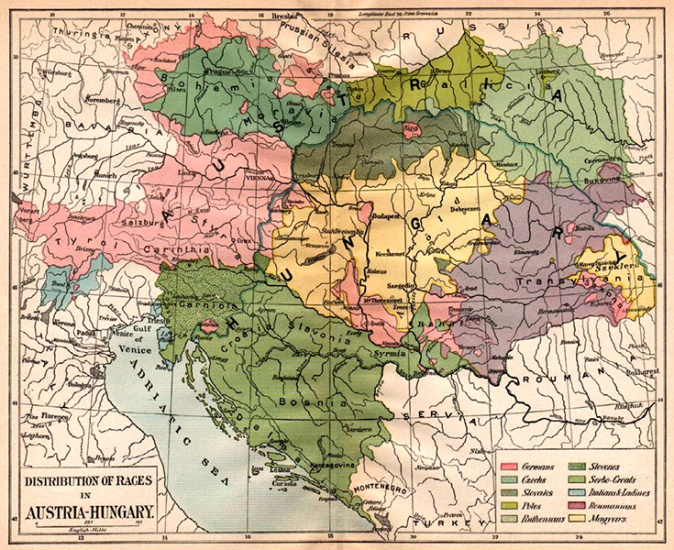 Mapa Rakousko-uherské říše z roku 1917.