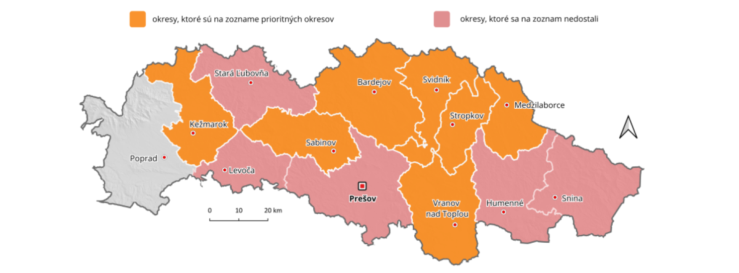 Prešovský kraj mal mať 12 prioritných okresov, po novom ich má len 7