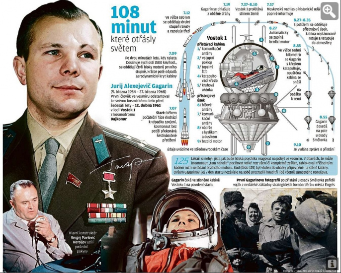Let z 12. dubna 1961 však bude navždy zapsán do historie lidstva a Gagarinovo jméno a tvář bude vždy doprovázet přívlastek „ten první“...