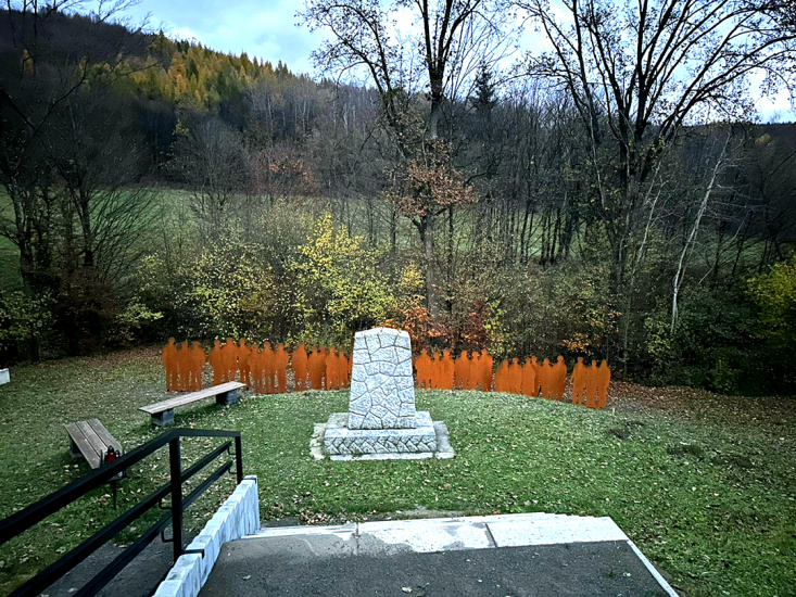 V nadväznosti na tieto práce bol tiež úplne zrekonštruovaný mlatový chodník vedúci až k samotnému pomníku v podobe kamenného obelisku, ktorý podobne ako súsošie prešiel odborným ošetrením a zakonzervovaním. V tesnej blízkosti pomníka boli inštalované lavičky a nová informačná tabuľa, ktorá moderným digitálnym spôsobom predstavuje historické fotografie podobizní jednotlivých obetí tragédie. Napokon v novembri 2023 boli v priestore za pomníkom, teda takmer priamo na mieste popravy, inštalované kovové siluety 32 popravených a dvoch preživších mužov. Na ich výrobu bola použitá špeciálna oceľ Corten, ktorá pri použití príslušných chemických prostriedkov pomerne rýchlo vytvára na svojom povrchu efekt silnej hrdze, avšak voči skutočnej korózii je tento materiál mimoriadne odolný, čo zabezpečuje jeho dlhodobú trvácnosť.