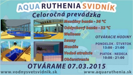 Aj mesto Svidník malo donedávna svojho „architektonického strašiaka“. Bola to rozostavaná budova krytej plavárne. Spolupráca mesta so súkromným sektorom však priniesla ovocie. Vnútorno-relaxačné centrum Aquaruthenia otvorili v sobotu.