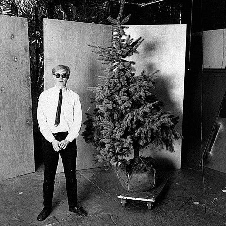 Image: Unknown photographer, "Andy Warhol and his Christmas tree in the Factory," 1964, ©AWF