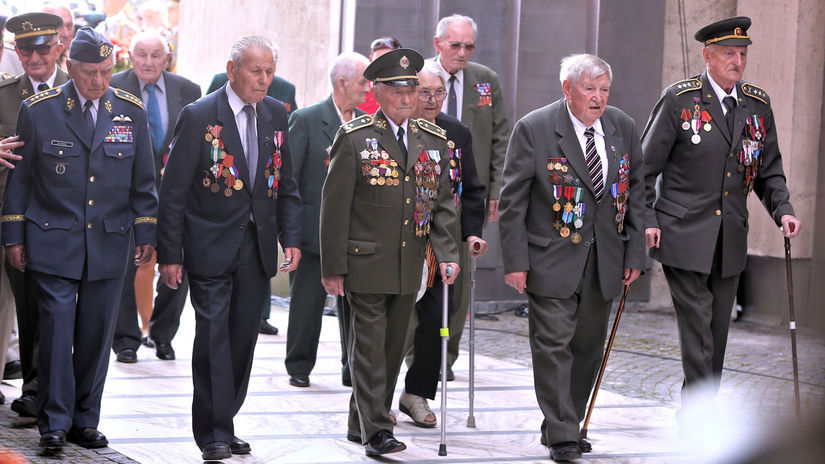 Vojnoví veteráni počas príchodu na pietny akt kladenia vencov pri príležitosti osláv 75. výročia vypuknutia SNP. Snímka je z Múzea SNP v Banskej Bystrici z 29. augusta 2019.