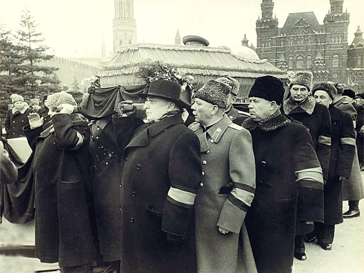 Tělo nebožtíka bylo nabalzamováno a převezeno do Moskvy, kde bylo vystaveno v sloupovém sálu Domu odborů. Do metropole komunistické říše se sjely údajně až dva miliony lidí, aby se vůdci světového proletariát naposledy poklonily.