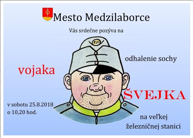 MEDZILABORCE. Socha Dobrého vojaka Švejka už má svoje miesto aj na miestnej železničnej stanici. Osadili ju uplynulú sobotu (25. augusta) pri príležitosti Dňa železnice v Humennom. Dielo vytvoril rezbár Jakub Vlček z Vraclavu pri Vysokom Mýte v Českej republike počas júnového Festivalu kultúry a športu pod Kamjanou. Udalosti prvej svetovej vojny a príbeh Jaroslava Haška Dobrý vojak Švejk sa odohrávali aj v Medzilaborciach a v blízkom okolí.