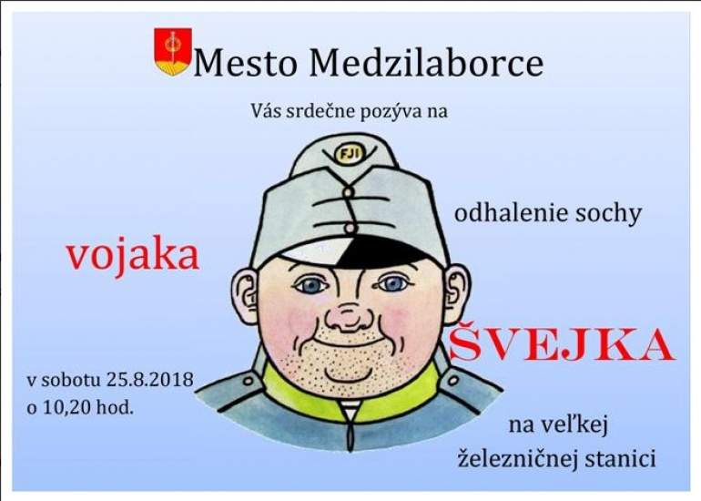 „Tento deň sme si vybrali aj kvôli tomu, že bol Deň železnice v Humennom a počas prázdninových víkendov jazdí pravidelne slovensko-poľský Vlak vojaka Švejka. Pri tejto príležitosti sme odhalili sochu na železničnej stanici. Je vyrobená z dubového dreva, s podstavcom má výšku dva a pol metra, váži jeden a pol tony. Je „odetá“ do podoby vojenskej uniformy rakúsko-uhorskej armády z prvej svetovej vojny. Namaľovala ju Alexandra Siváková, učiteľka základnej umeleckej školy v Medzilaborciach,“ vysvetlil primátor Vladislav Višňovský.