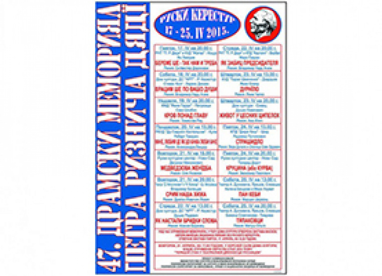 Орґанизатор Мемориялу Дом култури Руски Керестур, а по 25. април буду виведзени аж 13 театрални представи – осем за старших и шейсц дзецински, односно за дзеци.