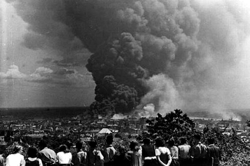 Bomby však nepadali iba na strategické ciele. Druhá vlna amerických lietadiel už totiž nevedela pre kúdoly čierneho dymu zamerať cieľ a bomby dopadli na ďalšie časti mesta.